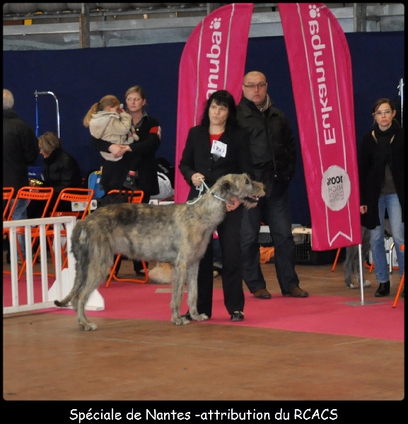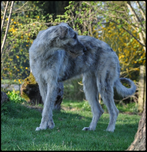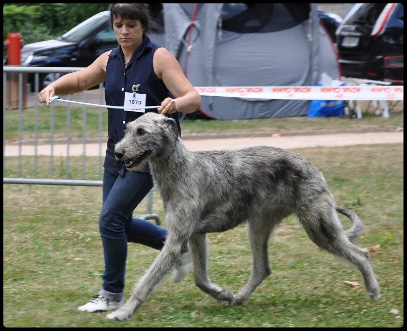 Tete longue bon parallélisme - oreille encore un peu plate - ex arrière main - fouet extremement long - bonne forme de poitrine - croupe large - l'angulation de l'epaule devrait etre plus marquée - bon temp aux allures -
